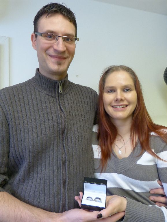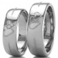 Trauringe in 500/- Palladium, poliert, Fuge sandgestrahlt, Herzen, 3 Brillanten 0,030 ct. W/Si