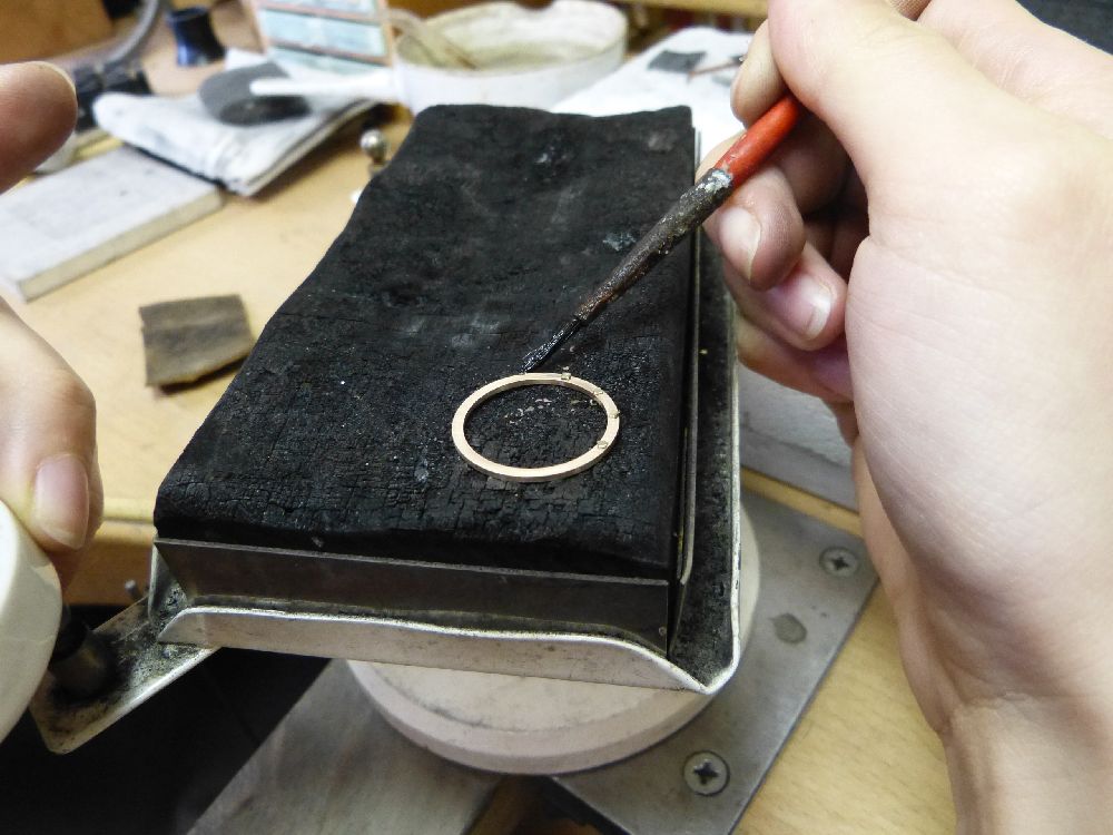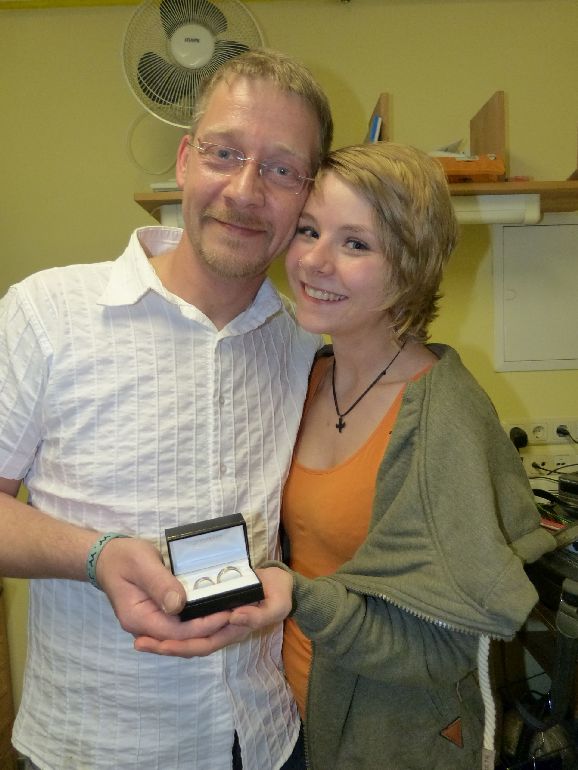 Trauringe selber schmieden 585/- Graugold Rotgold sandgestrahlt