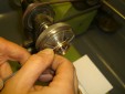 Trauringe in 585/- Roségold, Spannring, Fuge, mattiert und poliert, 1 Brillant 0,030 ct. W/Si