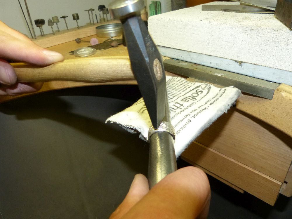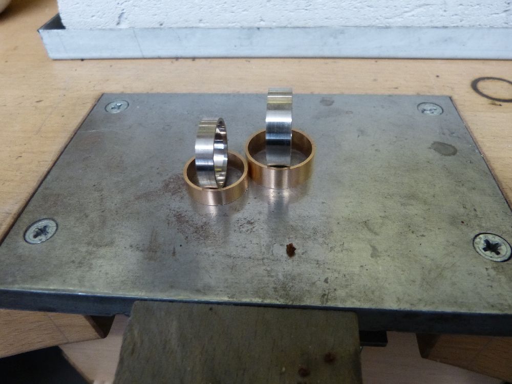 Trauringe selber schmieden 585/- Rotgold Graugold Hammerschlag quer